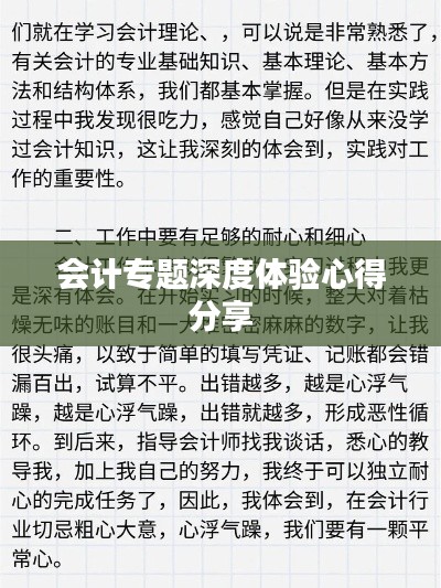 在我人生的学习旅程中,会计专题的学习无疑是一个充满挑战与启发的阶段,每一次深入研究会计的原理、方法和技巧,我都能感受到这门学科的魅力以及它对我未来职业生涯的深远影响,在此,我想分享我的会计专题体会,希望能给同样对会计感兴趣的朋友们一些参考。