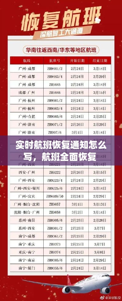 实时航班恢复通知怎么写,航班全面恢复