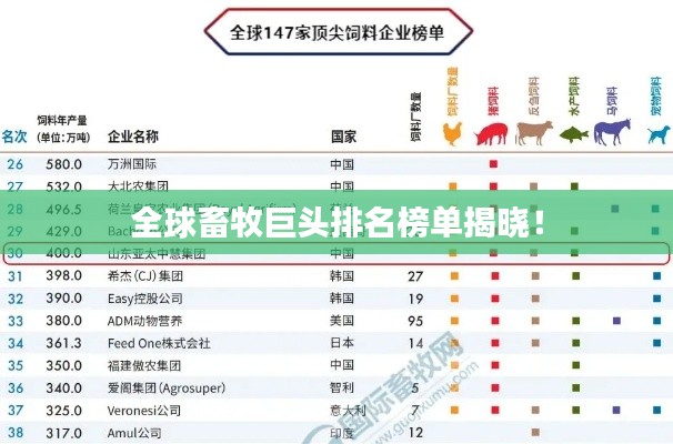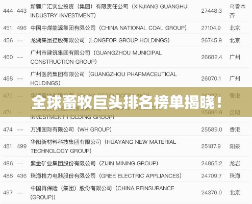 畜牧业是全球经济发展的重要支柱之一,随着人口增长和消费升级,畜牧行业持续发展壮大,本文将介绍世界畜牧企业的排名,以了解全球畜牧行业的格局和发展趋势。