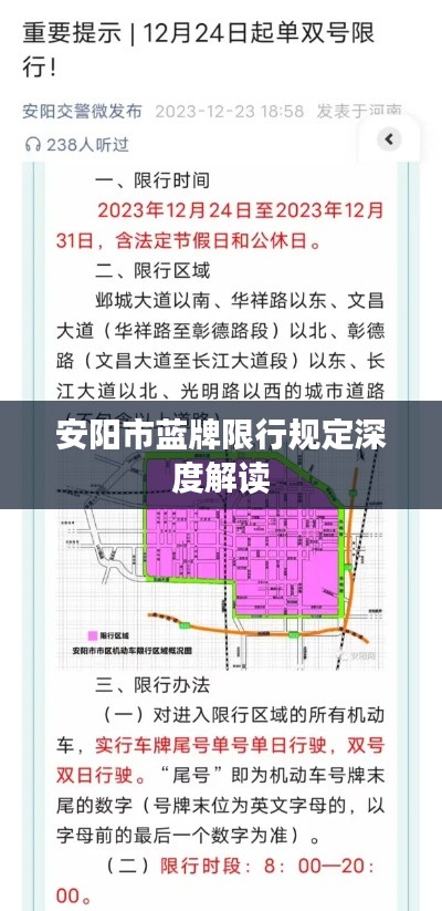 随着城市化进程的加速和交通拥堵问题的日益严重,越来越多的城市开始实施交通限行措施,作为河南省的一个重要城市,安阳市也推出了最新的蓝牌限行规定,本文将对安阳市蓝牌限行规定的最新内容进行详细解析,以便市民和游客更好地了解和遵守。