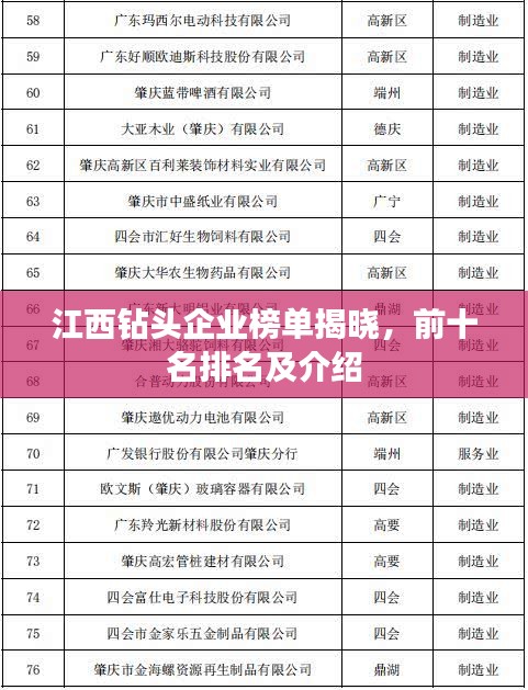 就是江西钻头企业排名前十名的介绍,这些企业在技术创新、产品质量、售后服务等方面均表现出色,为江西钻头行业的发展做出了重要贡献,随着市场的不断变化和技术的不断进步,我们相信江西的钻头企业将会迎来更加广阔的发展前景。