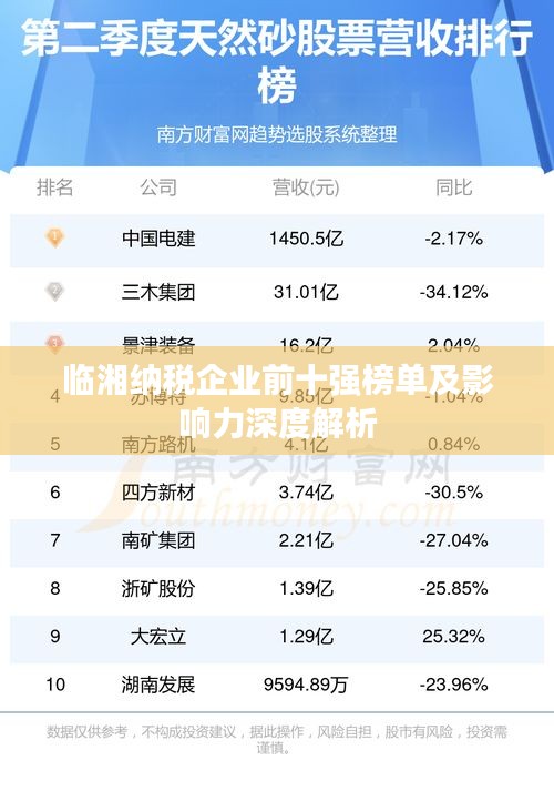 临湘纳税企业前十强榜单及影响力深度解析
