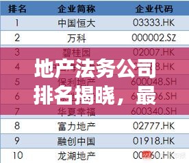 随着房地产市场的繁荣发展,地产法务行业也逐渐崭露头角,本文将为您揭示地产法务领域的强者,盘点业内公认的最强法务公司排名。