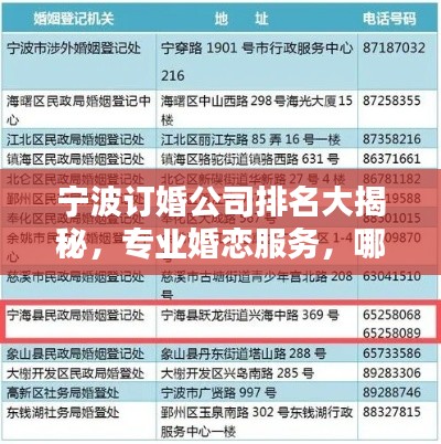 宁波订婚公司排名大揭秘,专业婚恋服务,哪家最靠谱?