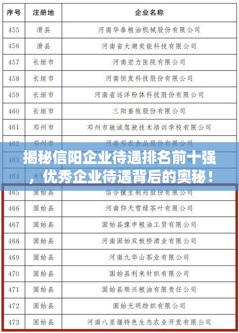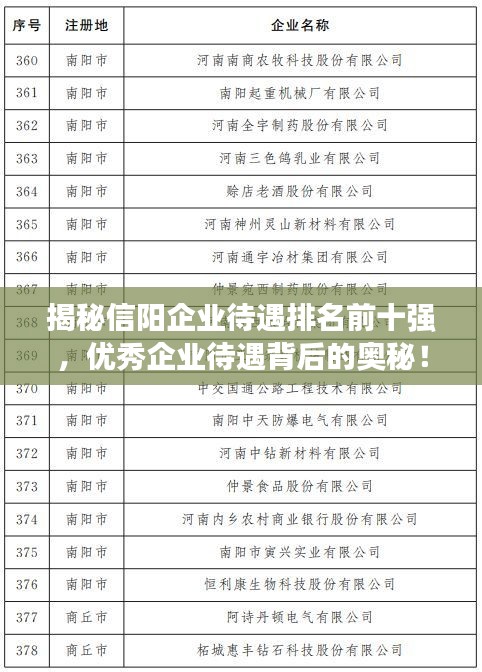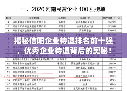 揭秘信阳企业待遇排名前十强,优秀企业待遇背后的奥秘!