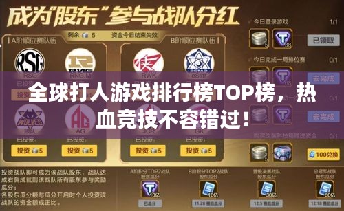 是全球最受欢迎的打人游戏排名,这些游戏各具特色,为玩家带来不同的游戏体验,无论是精美的画面、流畅的操作还是独特的游戏设定,这些游戏都展现了打人游戏的魅力与乐趣。