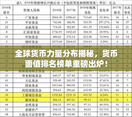 在全球化的今天,货币作为经济交流的主要媒介,其重要性不言而喻,各种货币的面值反映了其背后国家的经济实力和全球影响力,我们将深入探讨世界货币的面值排名,揭示全球货币力量的分布。