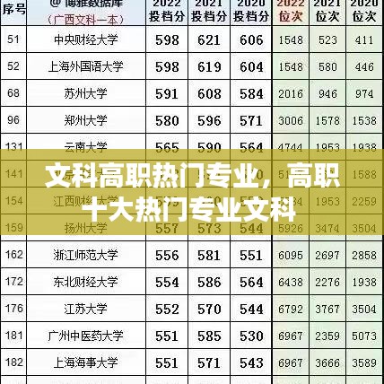 随着社会经济的发展和产业结构的调整,文科高职教育逐渐成为职业教育的重要组成部分。文科高职教育旨在培养具备扎实文科基础知识和专业技能的应用型人才,满足社会对文科领域人才的需求。近年来,文科高职热门专业不断涌现,吸引了大量学生报考。