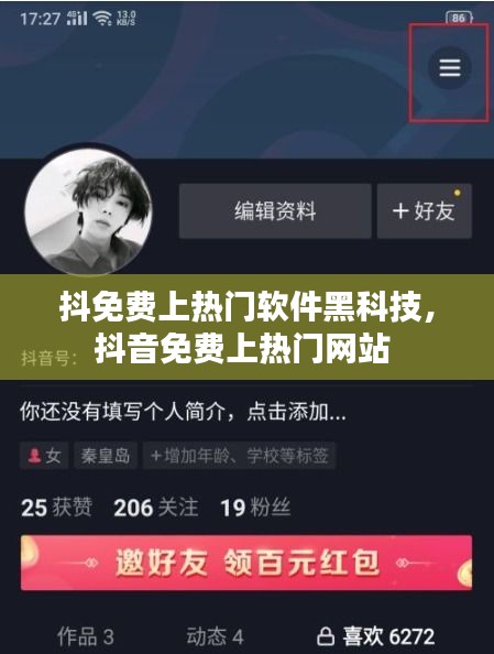 在短视频平台上,拥有大量粉丝和曝光度是每个创作者的追求。然而,随着竞争的加剧,许多创作者都在寻找一种能够免费上热门的方法。今天,我们就来揭秘一款名为“抖免费上热门软件黑科技”的工具,看看它如何帮助创作者在抖音等平台上获得更多的关注。