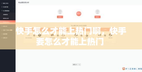 总之,要上快手热门,需要结合高质量内容、增加用户互动、优化发布时间、合理利用平台功能以及持续优化和调整策略。只有不断努力,才能在快手平台上取得成功。