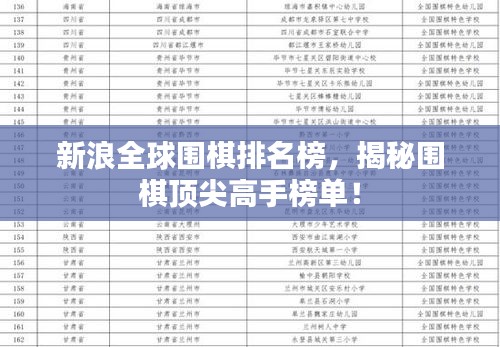 新浪世界围棋排名是反映世界各地围棋选手实力的重要榜单,通过了解排名背后的故事和顶尖高手的经历,我们不仅能感受到围棋的魅力,也能为我们在围棋道路上提供启示和动力,希望本文能为您带来有关新浪世界围棋排名的全面了解。