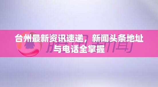 随着信息技术的快速发展,人们获取新闻的方式日益多样化,对于关心台州新闻的朋友们来说,了解获取最新头条新闻的地址和电话显得尤为重要,本文将为您介绍台州的新闻头条获取途径,包括官方网站、新闻媒体及相关联系电话,让您轻松掌握最新的台州资讯。