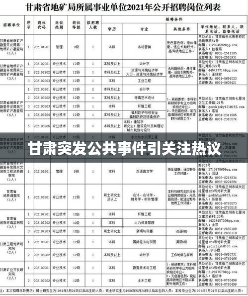 甘肃突发公共事件引起了我们的关注,也提醒我们加强公共安全建设的重要性,我们应该采取积极的措施,加强公共安全管理和宣传教育工作,提高应对突发事件的能力,保障人民的生命财产安全,促进社会的和谐稳定发展,我们也应该相信,在政府和社会各界的共同努力下,我们一定能够应对各种挑战,实现社会的长期稳定发展。