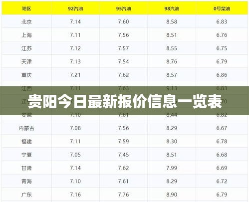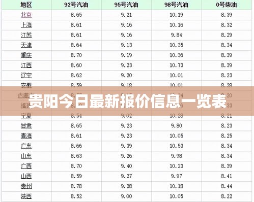 随着经济的繁荣和市场的活跃,贵阳的报价信息日益受到人们的关注,在这篇文章中,我们将为您呈现今日贵阳的最新报价信息表,让您轻松了解各类商品及服务的最新价格动态。