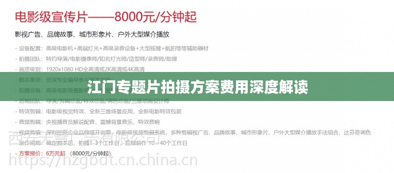 江门,这座历史悠久的城市,孕育了丰富的文化与自然景观,随着时代的发展和科技的进步,专题片拍摄在江门日益受到重视,本文将详细介绍江门专题片拍摄方案的收费情况,帮助需求者更好地了解和选择。