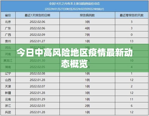 随着全球疫情的持续发展,我国的一些地区近期也出现了新的疫情动态,特别是在一些中高风险地区,疫情的严峻形势牵动着全国人民的心,本文将重点关注今日中高风险地区的最新疫情情况。