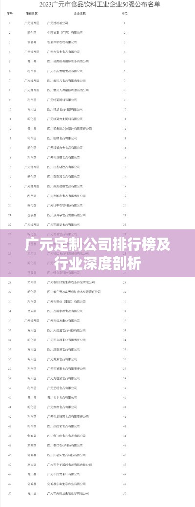 广元市作为四川省的重要经济区域,近年来在定制行业领域取得了显著的发展成果,随着消费者对个性化定制需求的不断增长,广元市的定制公司如雨后春笋般涌现,本文将探讨广元定制公司的排名及相关行业分析,为有意了解该领域的读者提供有价值的参考。