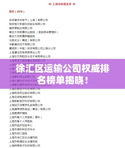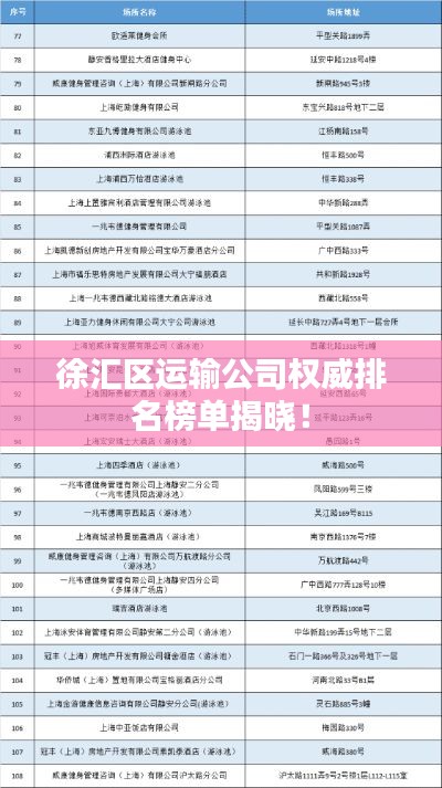 随着经济的不断发展和城市化进程的加快,运输行业在徐汇区得到了蓬勃发展,众多运输公司在这一区域崭露头角,为市民提供优质的运输服务,本文将为您呈现徐汇区运输公司的排名榜,带您了解这些公司的实力与特色。