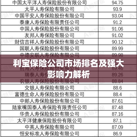随着保险行业的快速发展,各大保险公司纷纷崭露头角,竞争日趋激烈,利宝保险公司作为其中的一员,其排名及市场影响力备受关注,本文将对利宝保险公司的排名及其在市场中的地位进行详细探讨。