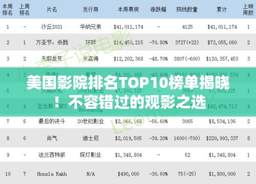 美国影院排名TOP10榜单揭晓!不容错过的观影之选