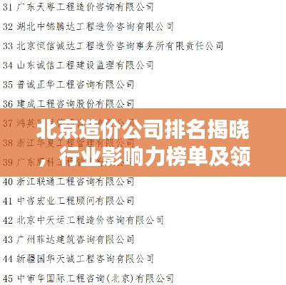 北京造价公司排名揭晓,行业影响力榜单及领先企业名单