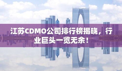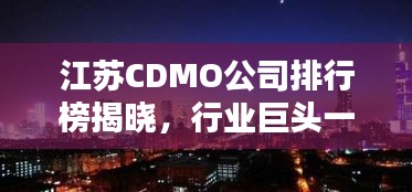 随着医药产业的飞速发展,CDMO(合同研发生产组织)行业逐渐崭露头角,江苏省,作为中国医药产业的重要基地之一,其CDMO公司的表现尤为引人注目,本文将为您介绍江苏地区CDMO公司的排名及相关情况。